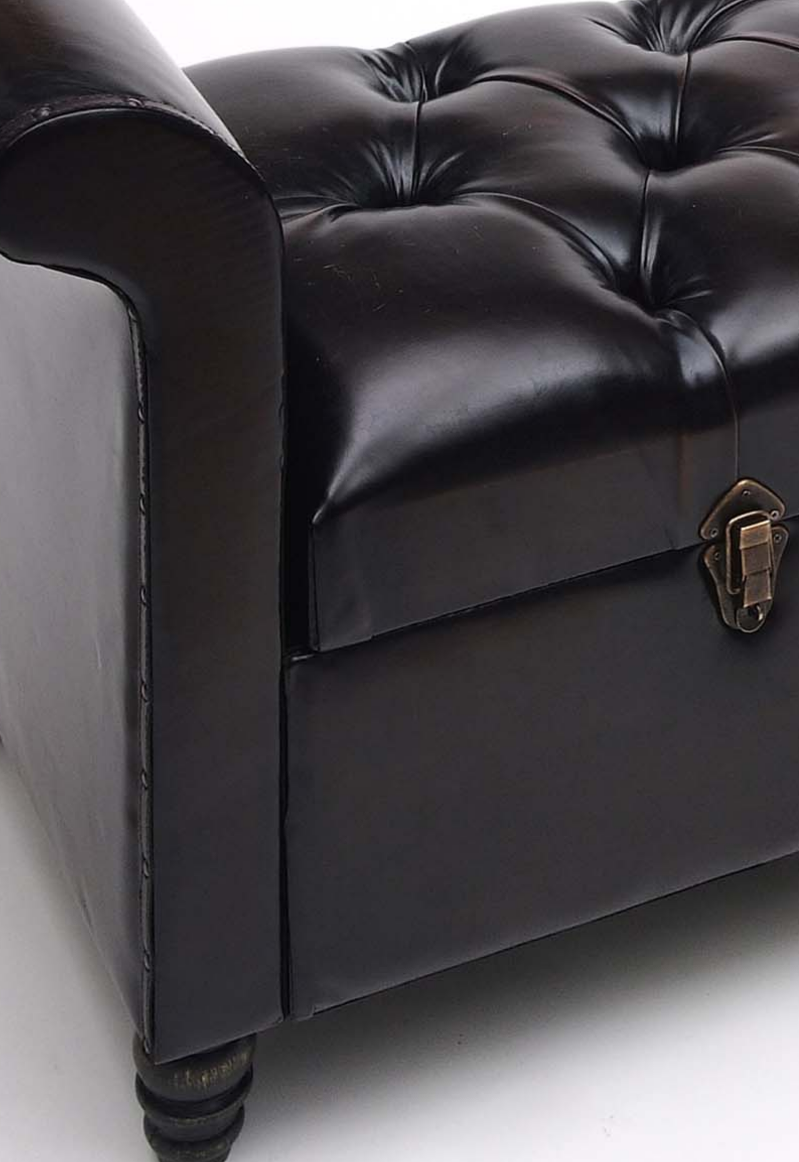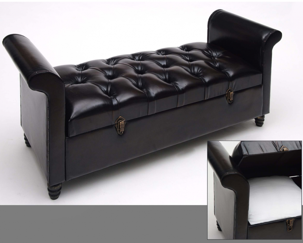 Banqueta-puff con brazos con arcon, polipiel marron chocolate