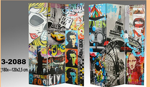 BIOMBO 3 PANELES LIENZO SINTETICO 180X120X2,5 CM