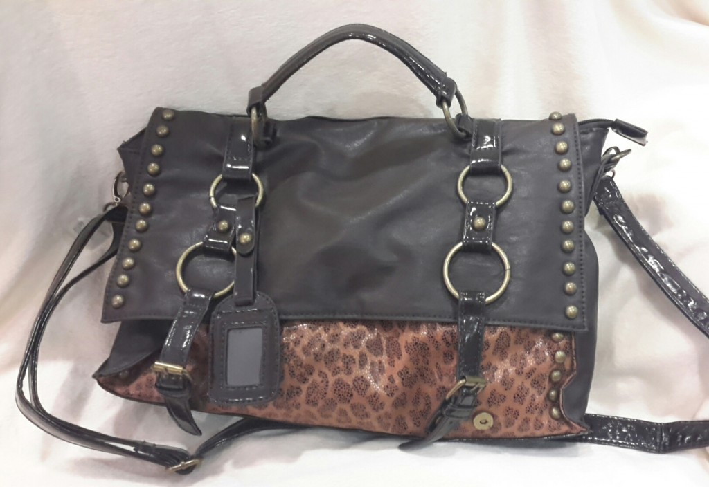 Bolso mano y bandolera piel sintetica lisa y leopardo