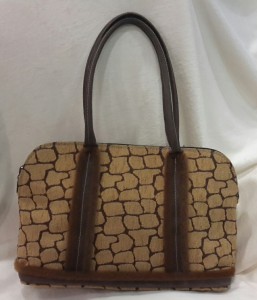 Bolso mano sintetico, tonos marrones, dibujo cuadricula