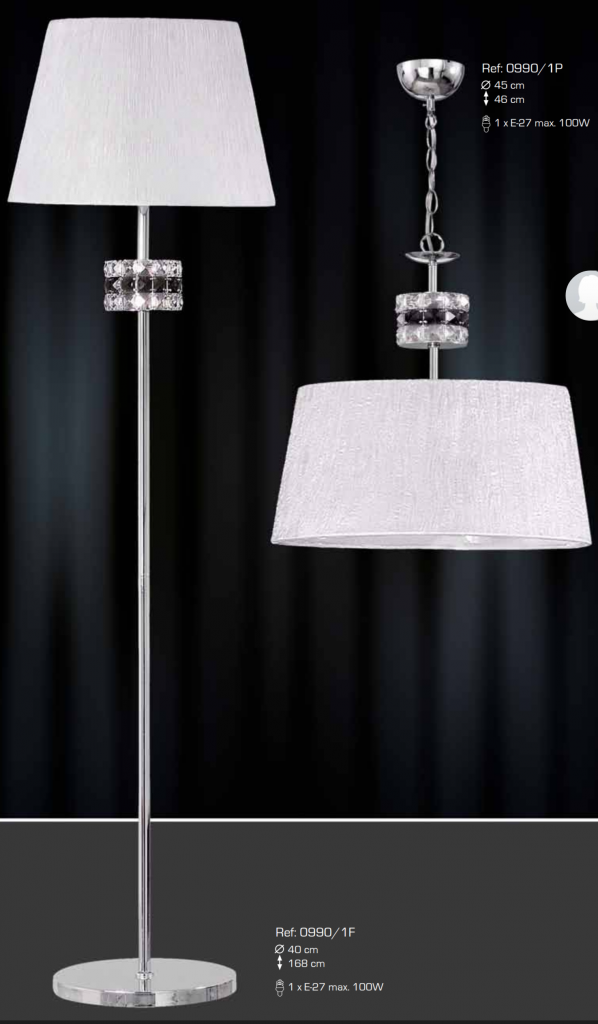 Ref 0990/1P Colgante 1 luz cromo cristal pantalla blanca pvp 99,00 €