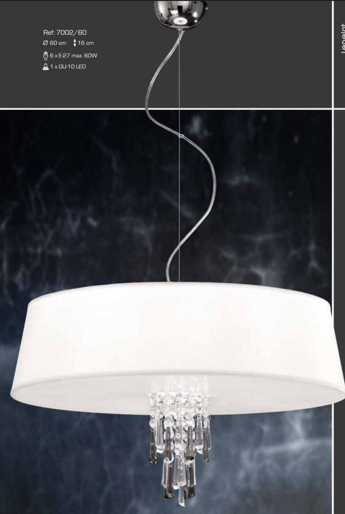Ref 7002/60    Pantalla blanca  50cm  6 luces c/cristales led  pvp 299,00 €