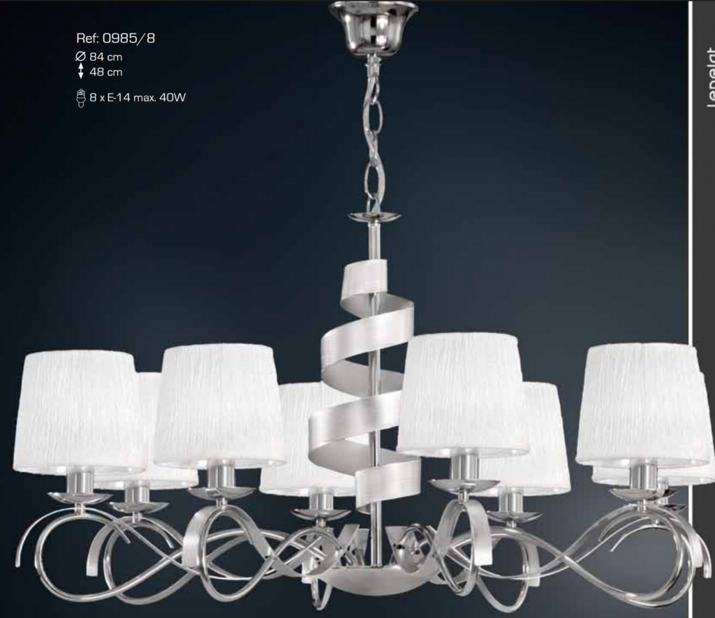 Ref 0985/8 Lampara 8 luces cromo pantalla blanca pvp 325,00 €