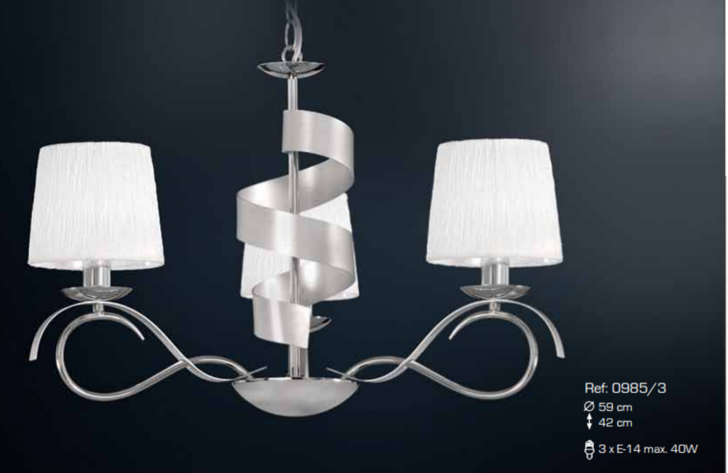Ref 0985/3 Lamp. 3 luces cromo pantalla blanca pvp 153,00 €