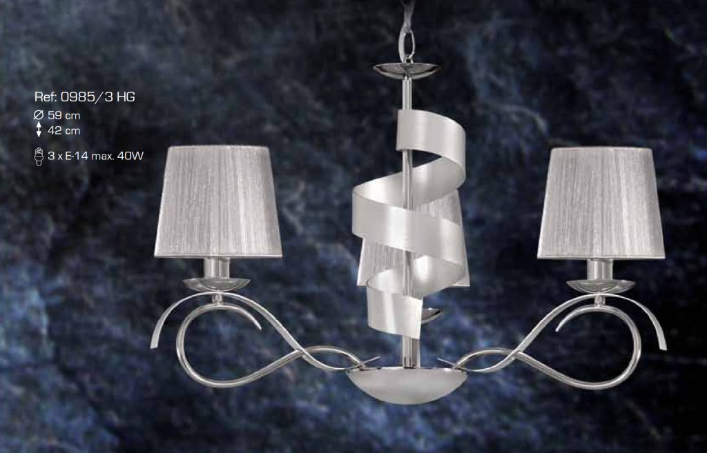 Ref 0985/3 HG Lampara 3 luces cromo pantalla hilo gris pvp 159,00 €
