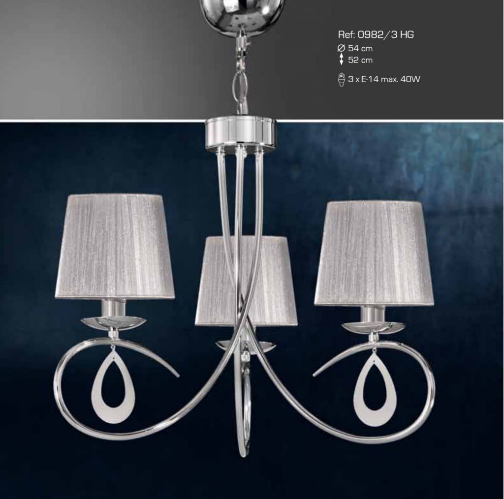 Ref 0982/3 HG Lampara techo 3 luces cromo pantalla hilo plata