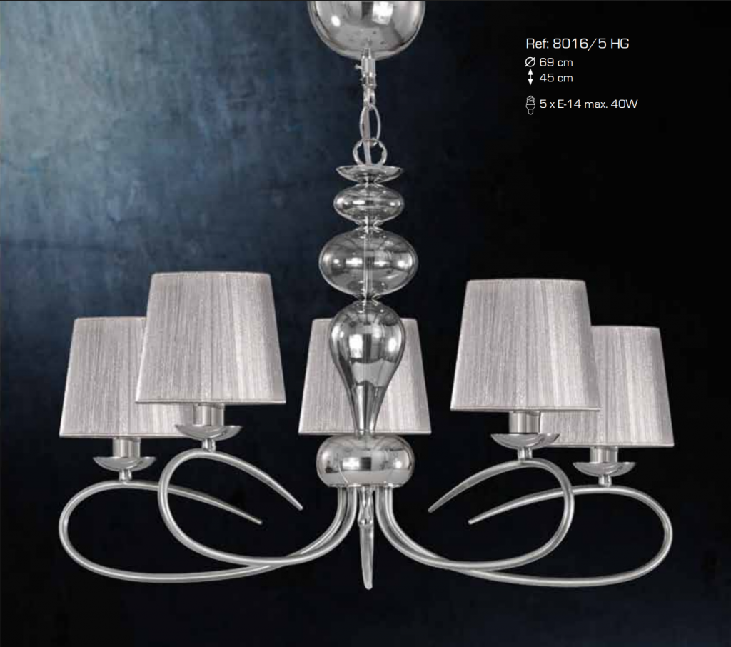 Ref  8016/5 HG  Lampara cristal cromo 5 luces con pantalla hilo gris pvp 375,00€