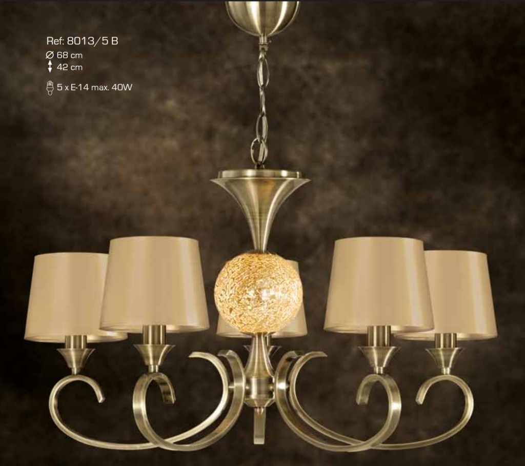 Ref  8013/5B  Lampara cuero 5 luces mosaico led