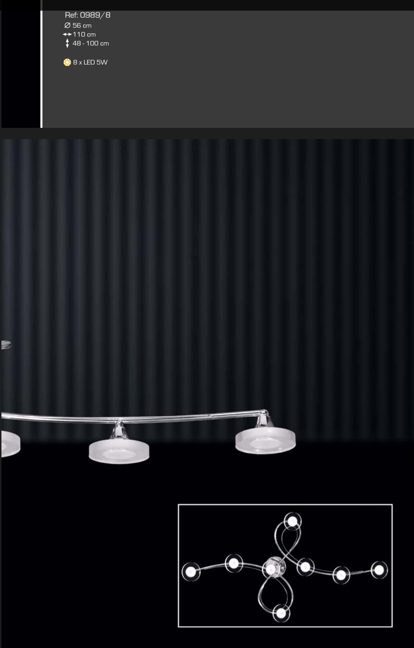 Ref 0989/8 Lampara 8 luces led cromo pvp 278,00 €