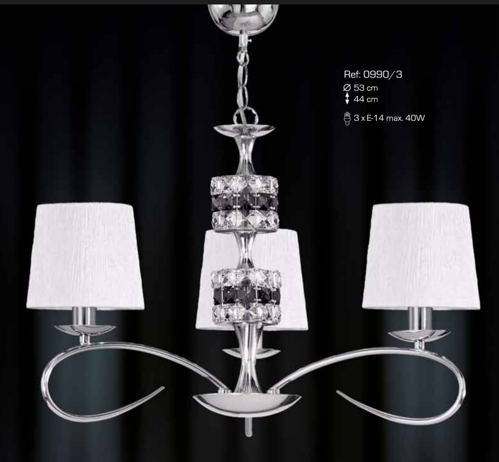 Ref 0990/3 Lampara 3 luces cromo cristal pantalla blanca pvp 165,00 €