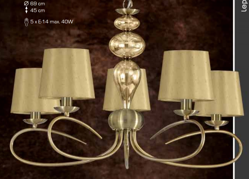 Ref 8017/5 Lampara cristal cuero 5 luces, pantalla crema pvp 268,00 €