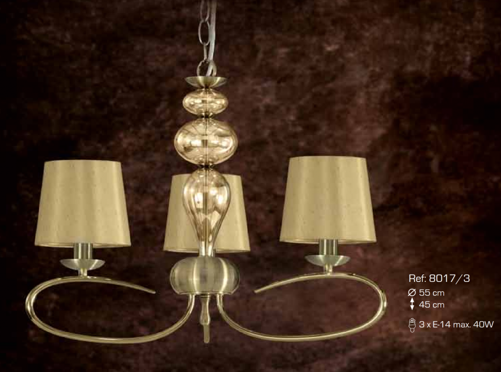 Ref 8017/3 Lampara cristal cuero 3 L pantalla crema pvp 168,00 €