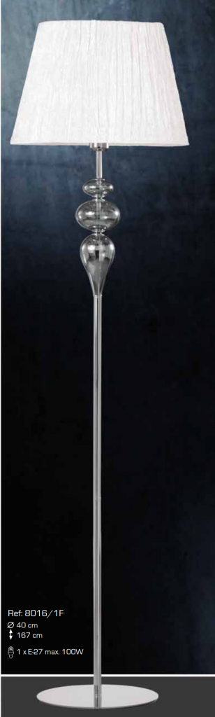 Ref 8016/1F Pie salon cristal cromo 1 luz con pantalla blanca