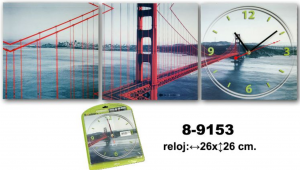 RELOJ EN TRIPTICO MADERA 26×26 CM