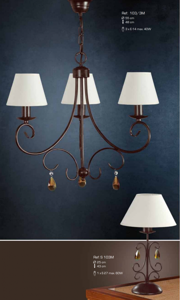 Ref 103/3-M Lampara 3 luces marron pantalla blanca pvp 79,00 €