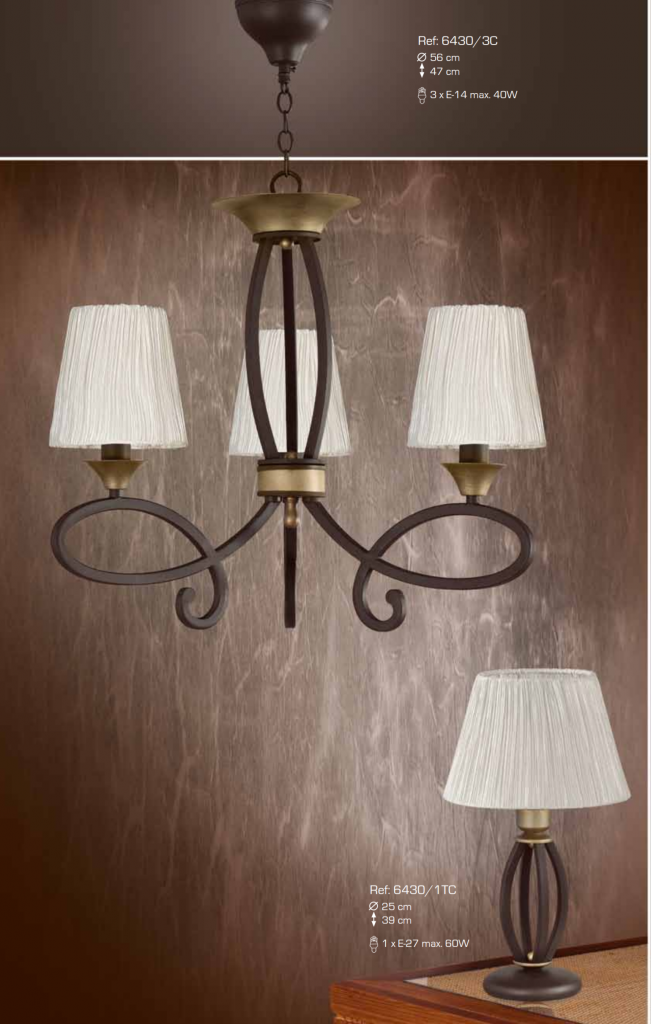 Lampara techo 3 luces y sobremesa marron pantalla crema