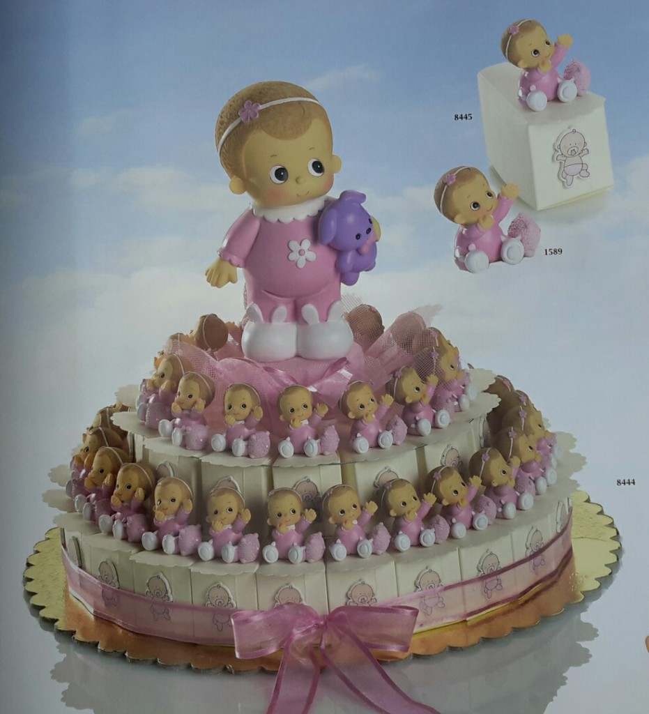 Ref 8444 Tarta 37 cajitas bebe diadema rosa pvp 130,85 €